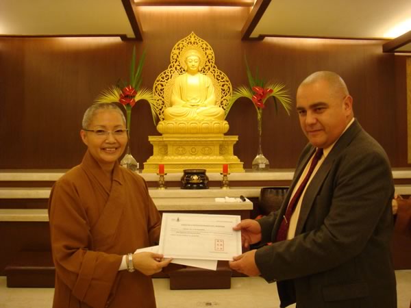 En 2007 (Enero) el Monasterio Budista FO GUANG SHAN lo invita a Herreras y al Paraje San Jose, ambas de Santiago Del Estero, para brindar ayuda social, atendiendo a personas carenciadas del hogar de niños y ancianos de dicho lugar.