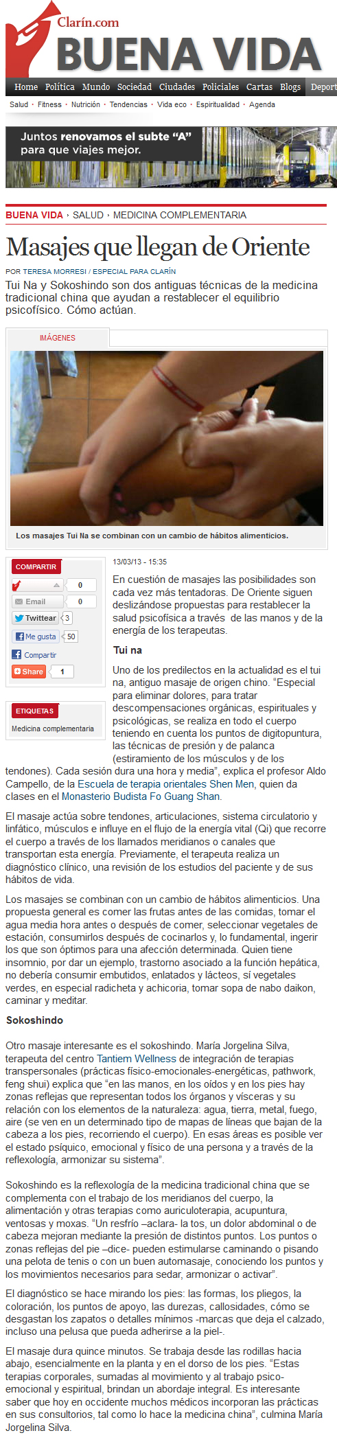 Notas Distintos medios gráficos entrevistarón al Profesor Campello para difundir las distintas técnicas milenarias chinas.